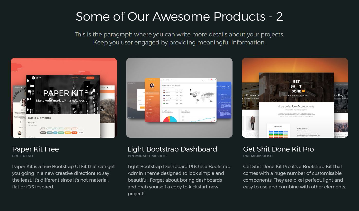 Paper Kit 2 Pro is built on top of Bootstrap 4. Get the benefits of the most powerful framework and the perks of amazing design.